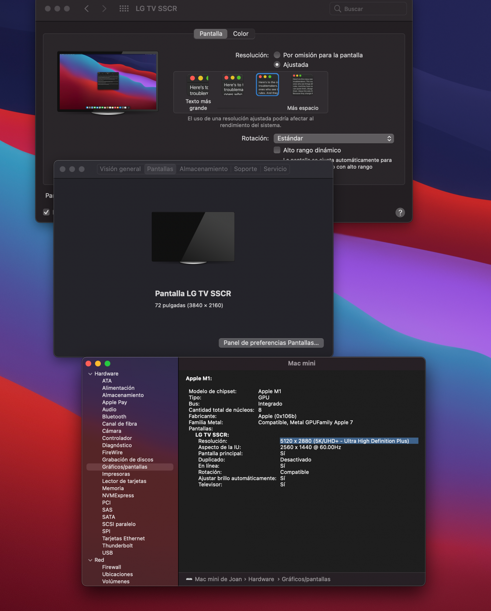 MacOS Big Sur detects the LG 48CX as a 72 "screen "LG TV SSCR" ...