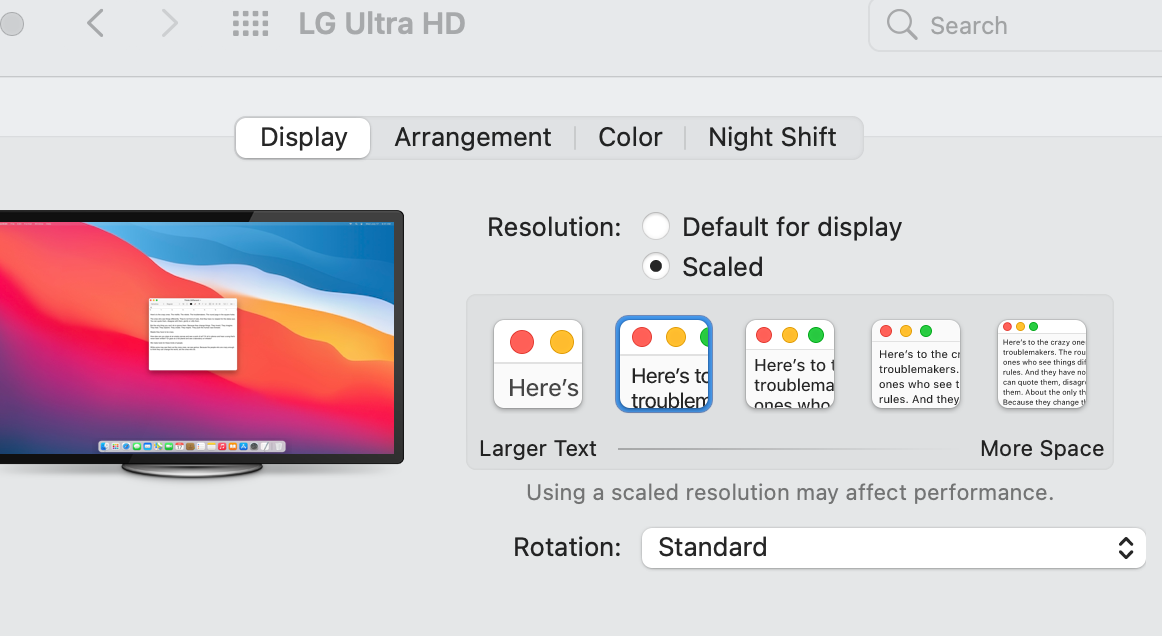 | YPbPr with USB-C only (2560x1440 @60hz), or RGB with HDMI over the QGeeM Hub (2560x1440 @60hz) | Select native resolution for the monitor (2560x1440). Fonts look a little blurry / fuzzy. Reduced the Apple Font Smoothing to 1 (if I choose 0, the fonts are thinner and more fuzzy). | The colors looks to me OK even with YPbPr- the contrast is overall a little bit less I think. Switch to RGB with HDMI with help of the QGeem Hub: I can't see any major difference in color- the contrast is better I think. |