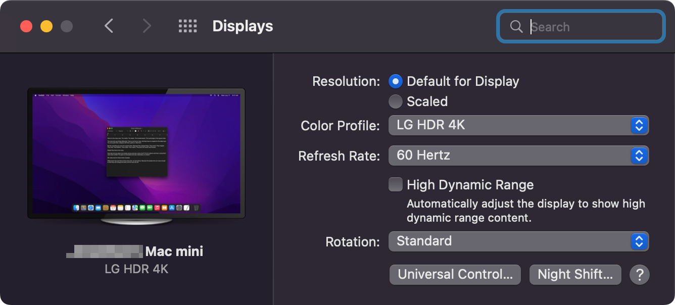 Seems insane to me that a different refresh rate would actually cause a kernel panic, but I guess I’ll find out. I don’t recall ever really doing anything in properties for display; I just plugged in the monitor and it worked.