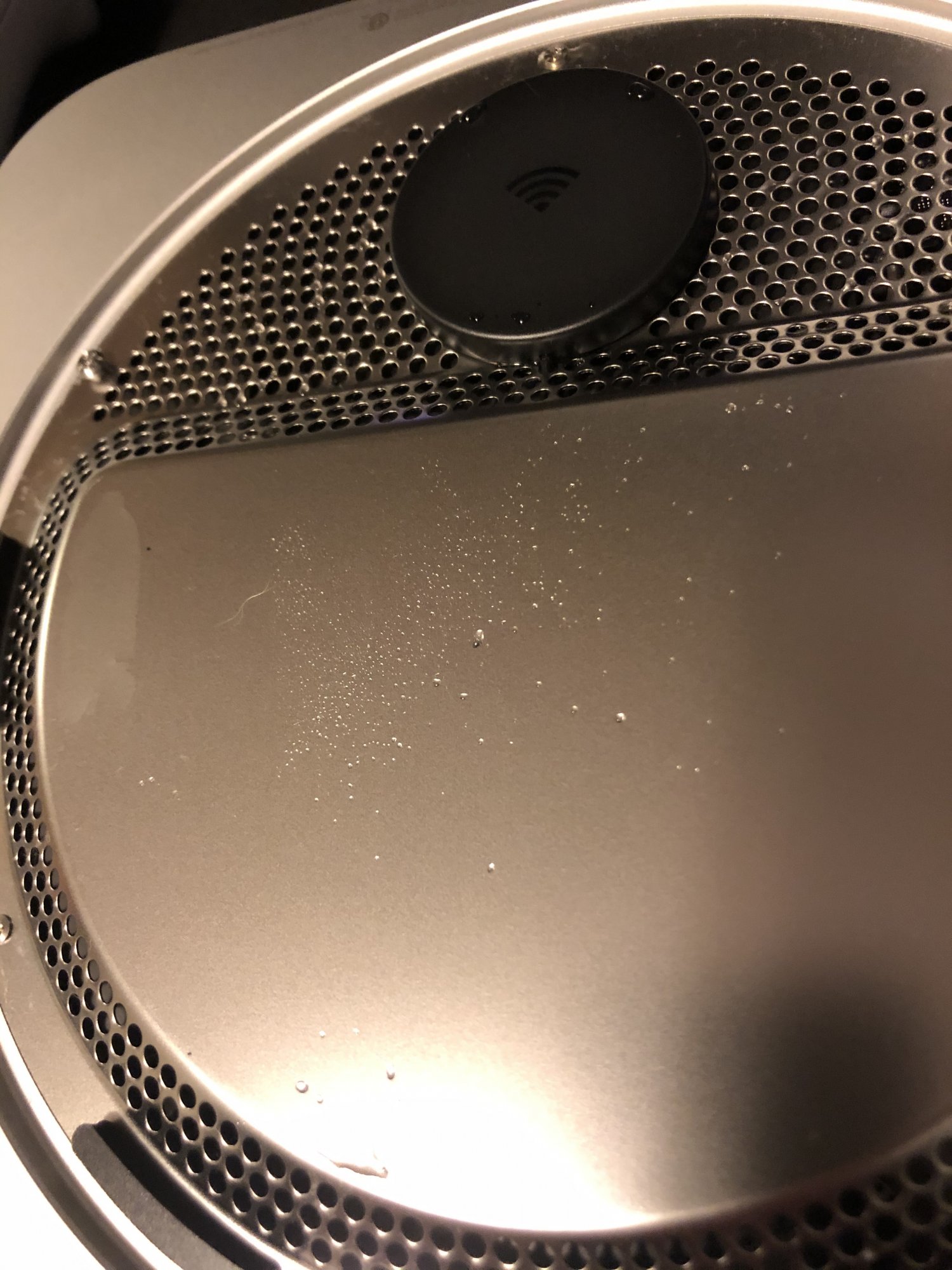 i noticed the back was subtly wet. The black part where all the ports are. I went to wipe it, and more liquid appeared. Whenever I rub it with my fingers more and more appears. I removed the black plastic from the bottom and there’s evidence of some form of liquid inside. It has NEVER been spilt on, so save me that. No drink has ever been near this thing. What is going on??????