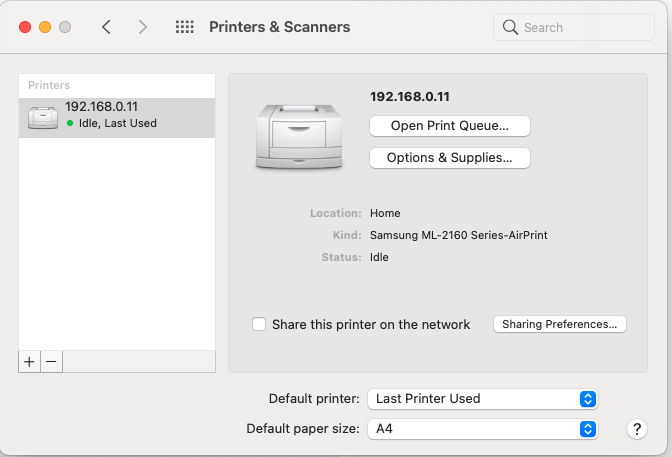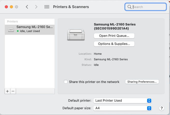 1. Printer problem - I have older but still fully working Samsung ML-2165w which works fine connected to windows PC/2 android phones and 1 iphone but can't get it to work with this mac, when I go add printer in printer and scanners I can add IP address and choose Protocol, I did try AirPrint and IPP, both will show the printer is at idle but when you try to print from pages just won't print, in screenshots below you can see under "kind" is able to even get the printer info I'm also able to enter samsung syncthru web service via options and supplies.