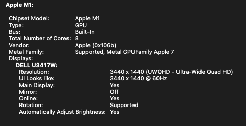 So I am using a iiyama G-Master GB3461WQSU-B1 Red Eagle with a resolution of 3440 x 1440px and just hooked up my base Mac mini M1 to it.