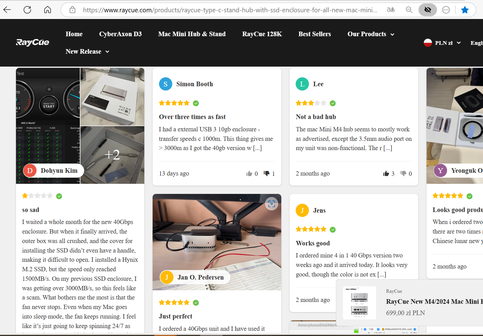- Raycue has a comment section on their website. Recently something strange is going on there, which puts Raycue's reputation into a question. Few negative comments on "New 40Gbps 8-in-1 Mac mini hub" pointing fan noise...have mysteriously disappeared. I did not manage to screenshot them all, but look at the attached and compare it with actual website comments.