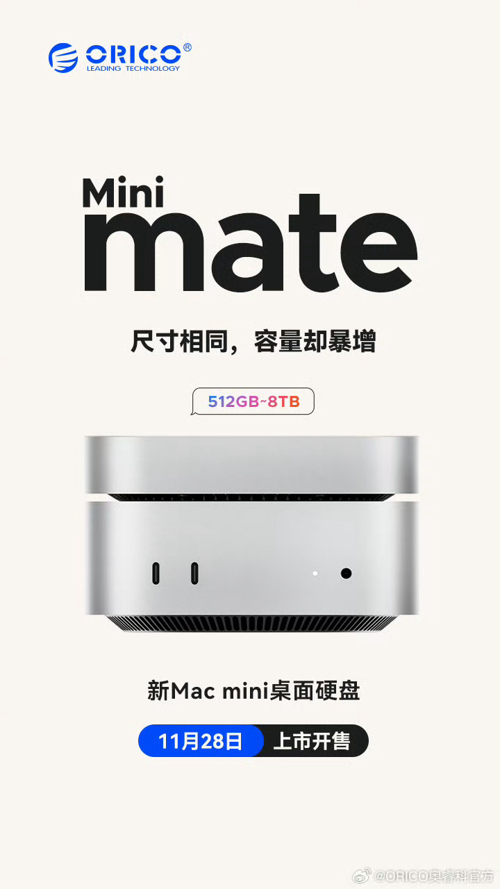 ORICO announced a "storage base" for the M4 mini foorprint. Doesn't look like it is TB, just one USB4 port, also no other ports at all to act as a dock.