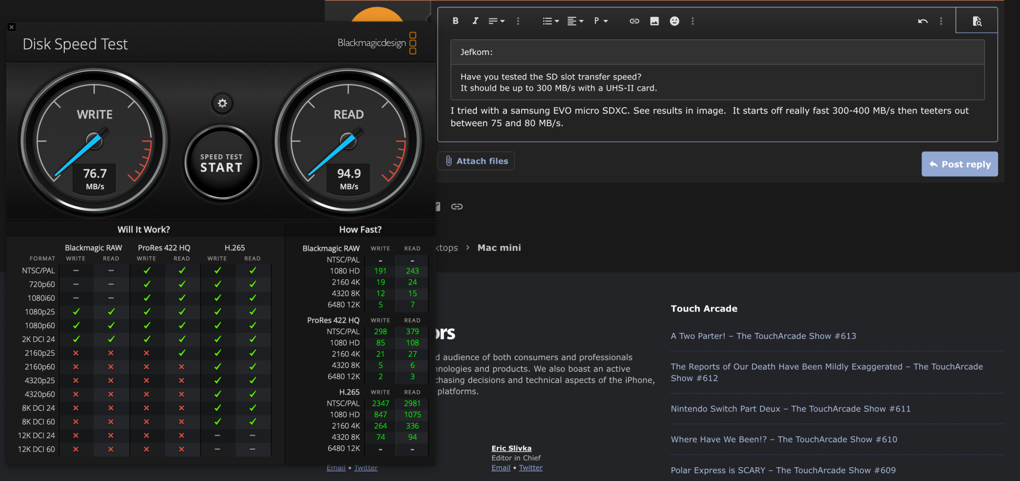 Version "B", (one NVMe slot), macOS read 5809 MB/s, write 3162 MB/s (vs. Windows write 5885 MB/s -- must be macOS oddity?)