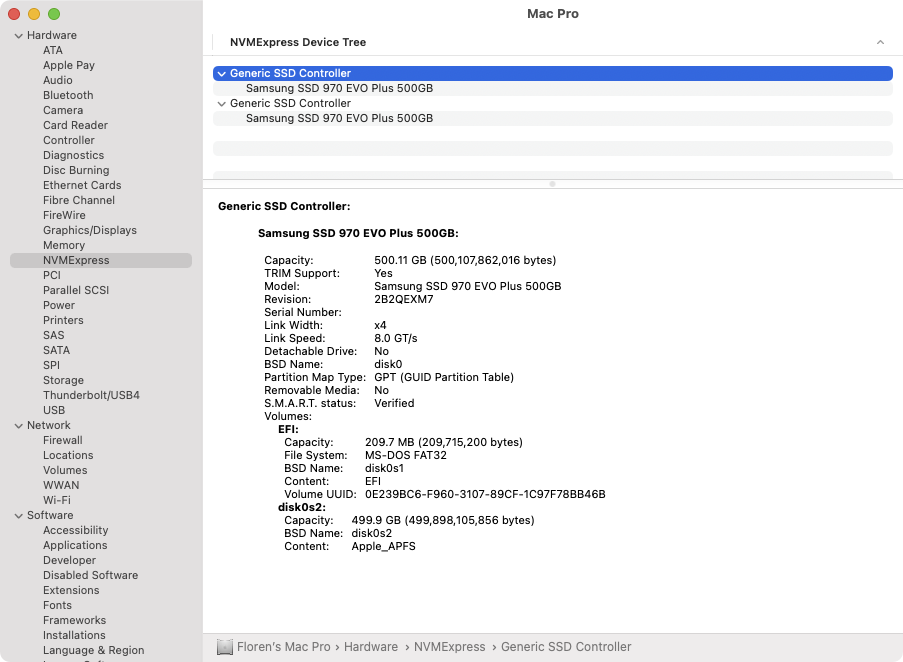 OWC Accelsior S SATA-3 PCIe 2.0 card. It's a SATA SSD, not NVMe, or AHCI - slot 4.What card do you use, Syba? I believe the card model and slot are important.