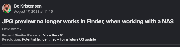 I recently upgrade to play with Mac Os 14, been going perfectly. I noticed though on external hard drives i have no more photo image preview, has any one else noticed this yet either ?