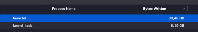 launchd process also loaded 33 GB of information for some reason. What the hell is happening with this darn macOS? For example, I downloaded files via a torrent to my HDD, but the activity monitor counts it as a load on the SSD. How do I find out what is being written to the SSD and what is on my HDD?