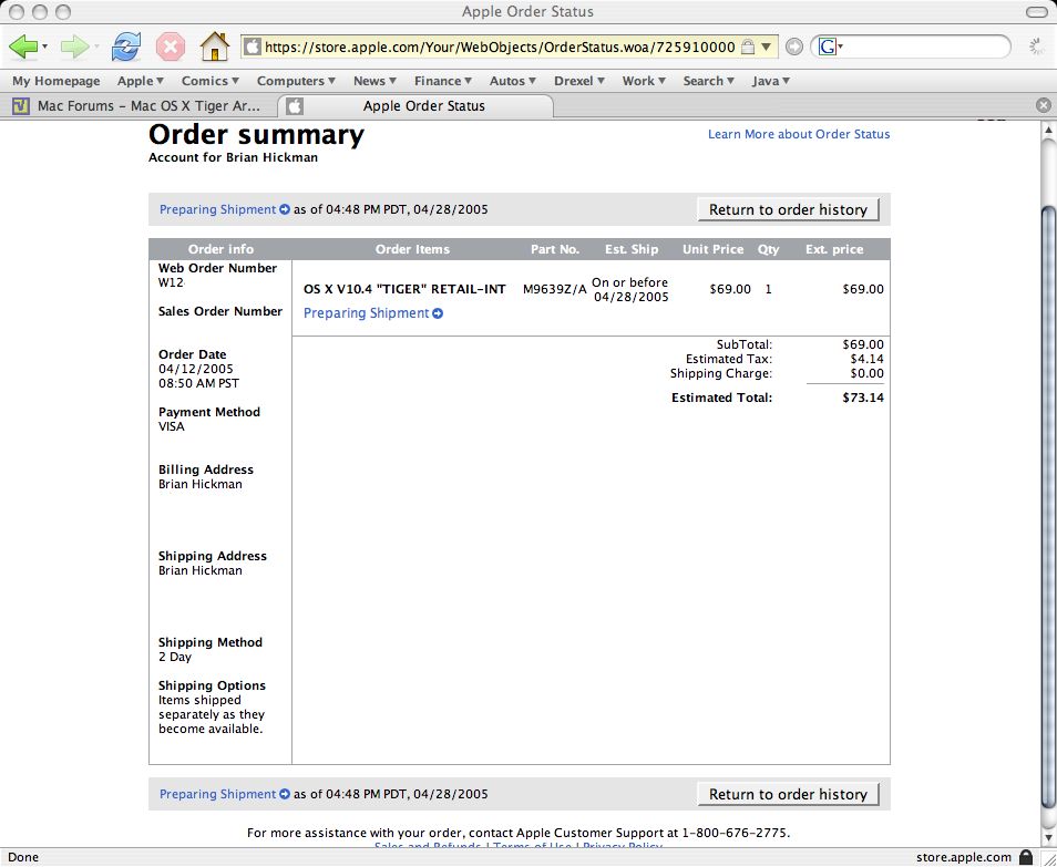 I'm still in preparing shipment according to Apple's website. I'd be thrilled if it actually came tomorrow.Mac_Freak said:At least we know we will be getting our packages delivered tomorrow![]()