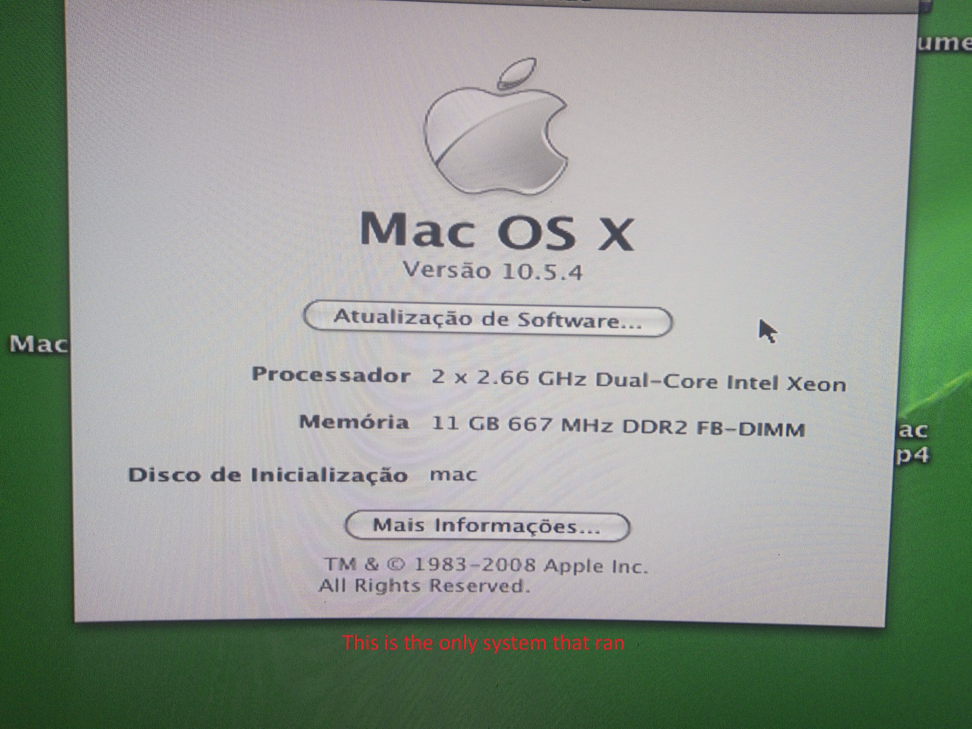* and install the latest Mac OS possible on it but I can't because my screen always goes off the only one that ran was 10.5.4 and every time the system starts it complains about the gpu power supply. .