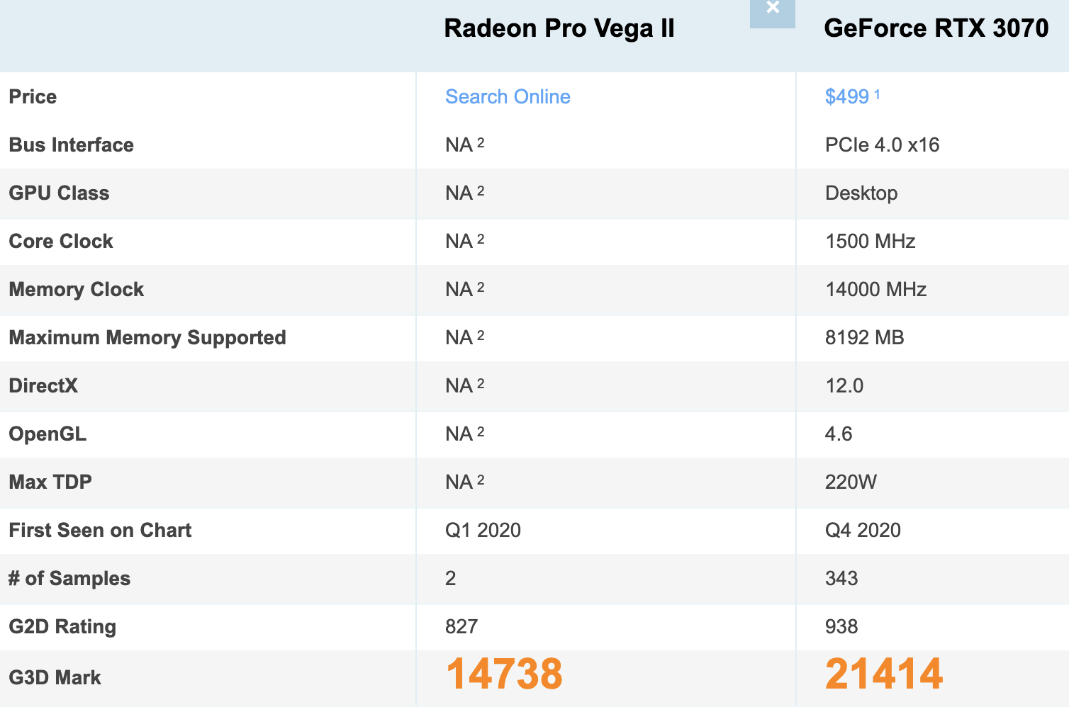 I was able to get the following configuration from iBuyPower for $1,558 after factoring in $50 Amazon card, credit card rewards, sale price and taxes. A Ryzen 5900X, NVidia RTX 3070, 32GB DDR4 3200 ram, 512GB NVME SSD. The equivalent Mac Pro with a Xeon W-3275M and a Pro Vega II, 32GB RAM and 512 SSD costs $15,833 after all taxes and Apple 3% cash back. See screenshots below. I know the two systems aren't identical, but close enough. The PC build has PCIE 4.0 motherboard and Wifi 6 was included, while Apple has TB3 ports and is aesthetically pleasing. Apple has a 32GB pro Vega card, but what edge it gives in video processing when maxed out, it loses in tasks like gaming, ray tracing and VR to the RTX 3070.