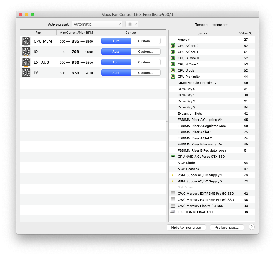 On a side note, I notice your GPU shows up on fan control whereas mine doesnt. That's interesting! I wonder if it's a driver/OS issue- I'm on Catalina with DosDude1s amazing patcher and a flashed windows EVGA version of the GTX. Did you install any drivers? I was considering it but as everything is working fine on my mac I'm loath to do so incase I screw something up as I'm using this machine as my WFH/Freelance computer right now.