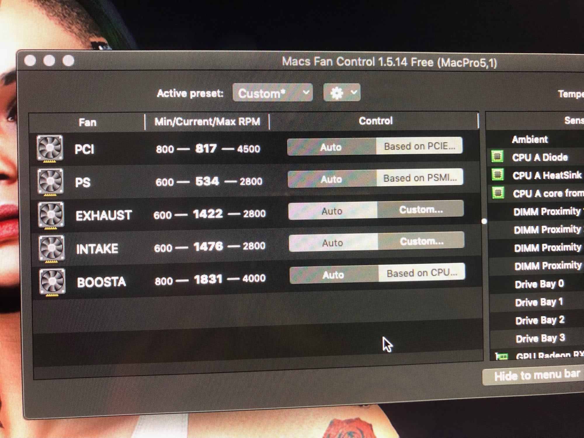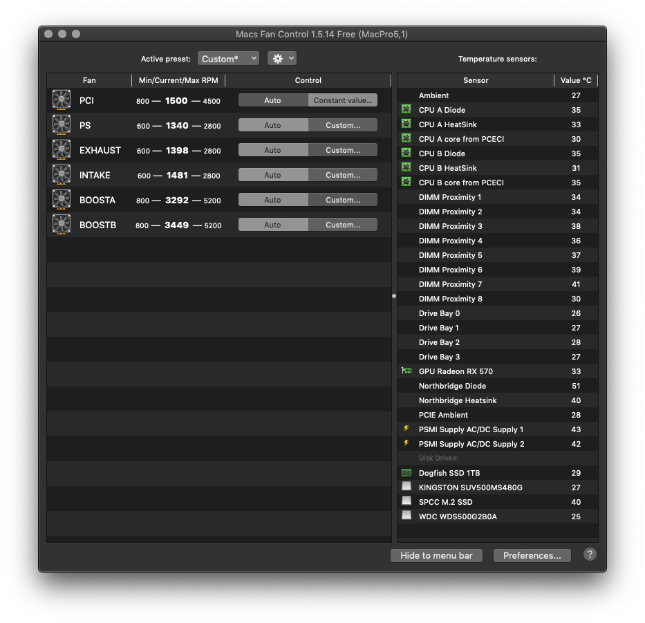 Tests were done with Intake and Exhaust both equally set to different fixed rpm on a MP 4,1>5,1 DUAL X5690 running Mojave.