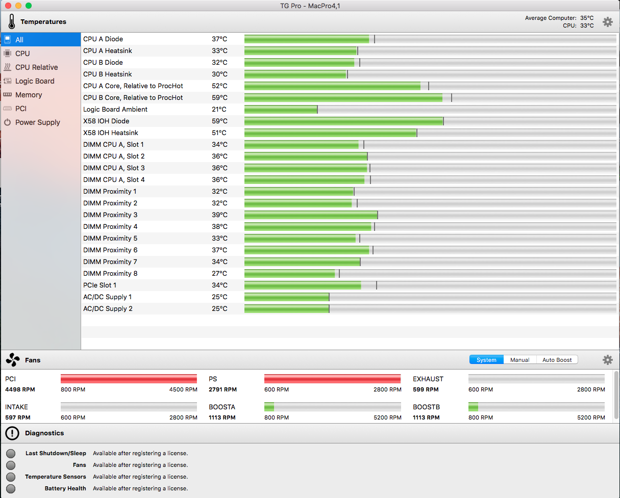 So I downloaded TG Pro to see if all sensors and temperatures are OK.