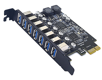 And then I got a 7 port USB 3.0 PCIe card, on the assumption, it'd go in a spare slot and just work. Which it partly does.