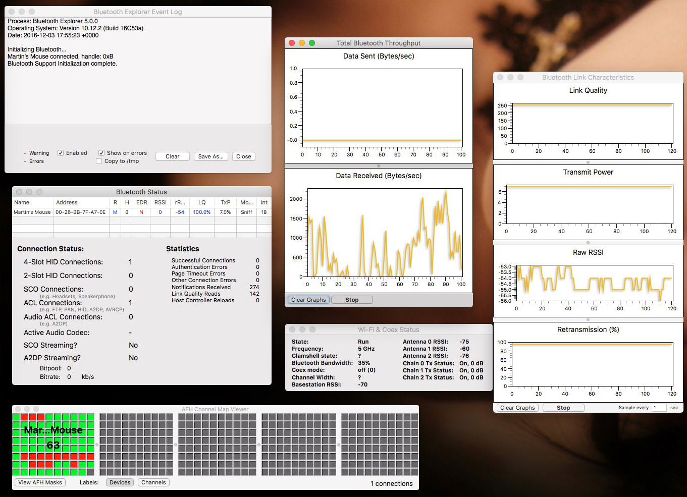 The only problem is its not smooth. I have other laptops with BT4.0 capability and they work just fine on my desk. (my Mac Pro is just underneath my desk to the right). I am using Logitech MX Master and Bose Soundlink Mini. They keep getting disconnected every 5 seconds or so and it's really annoying.
