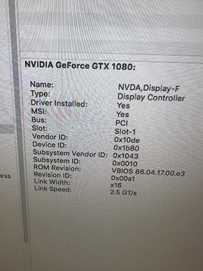 Attention: Pascal-cards are only supported up to macOS High Sierra with installed nVidia WebDrivers!