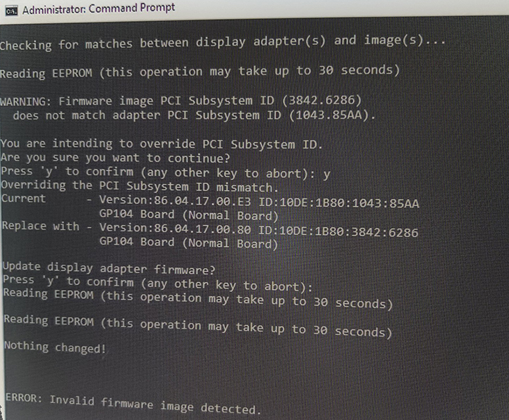 Possible difficulty: the size exceeds 256KB, smaller flash memories can't hold the complete code, so flashing will refuse. I've found some EVGA-roms for similar cards over the 256KB boundary, there is a good chance that yours has also a 512KB chip.