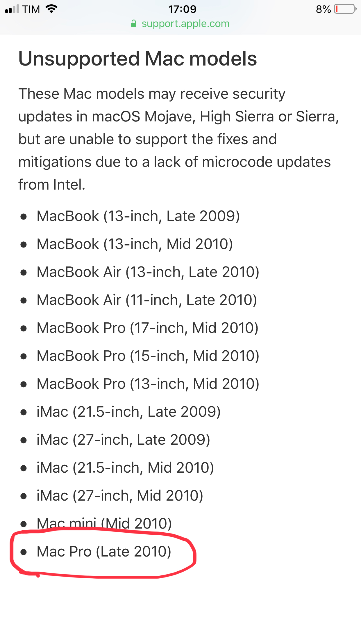Macs unsupported by the mitigations due to lack of microcode updates from Intel: