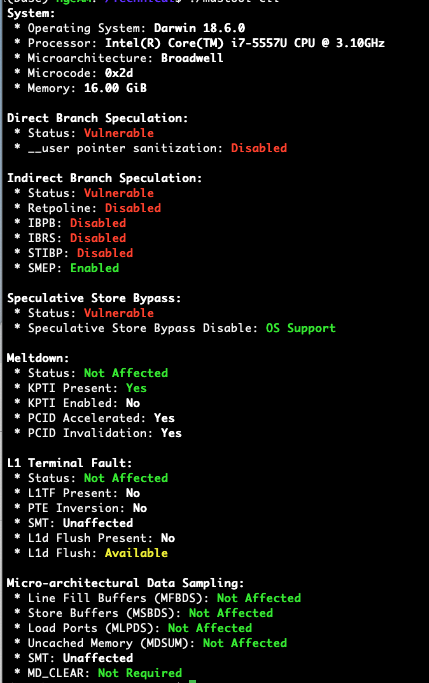 Vulnerability status for these machines with Hyper threading (SMT) disabled: Unclear