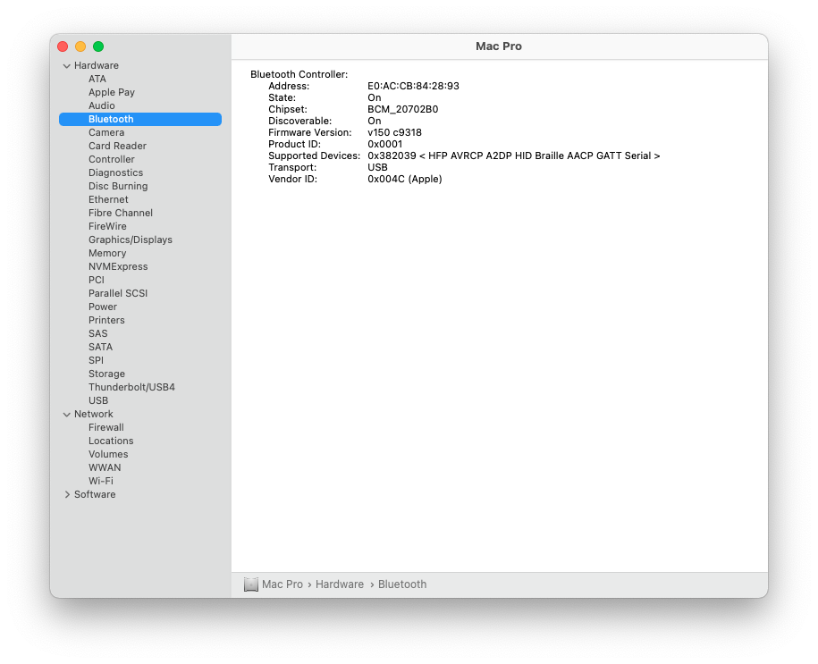 Here is incomplete Bluetooth info on Monterey 12.0.1 (Martin's OC 7.5 package ):