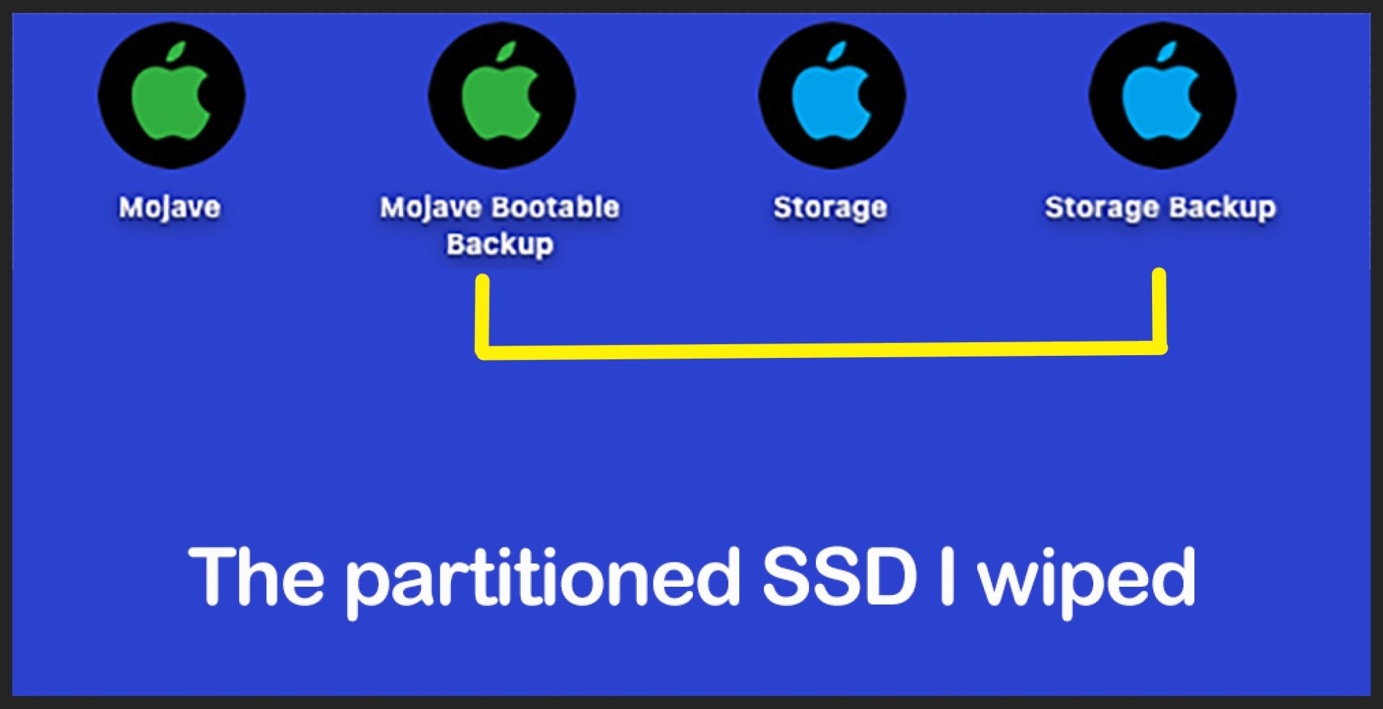 - Mojave is on one 2TB SSD and Mojave Bootable Backup is on another 2TB SSD. (screenshot)