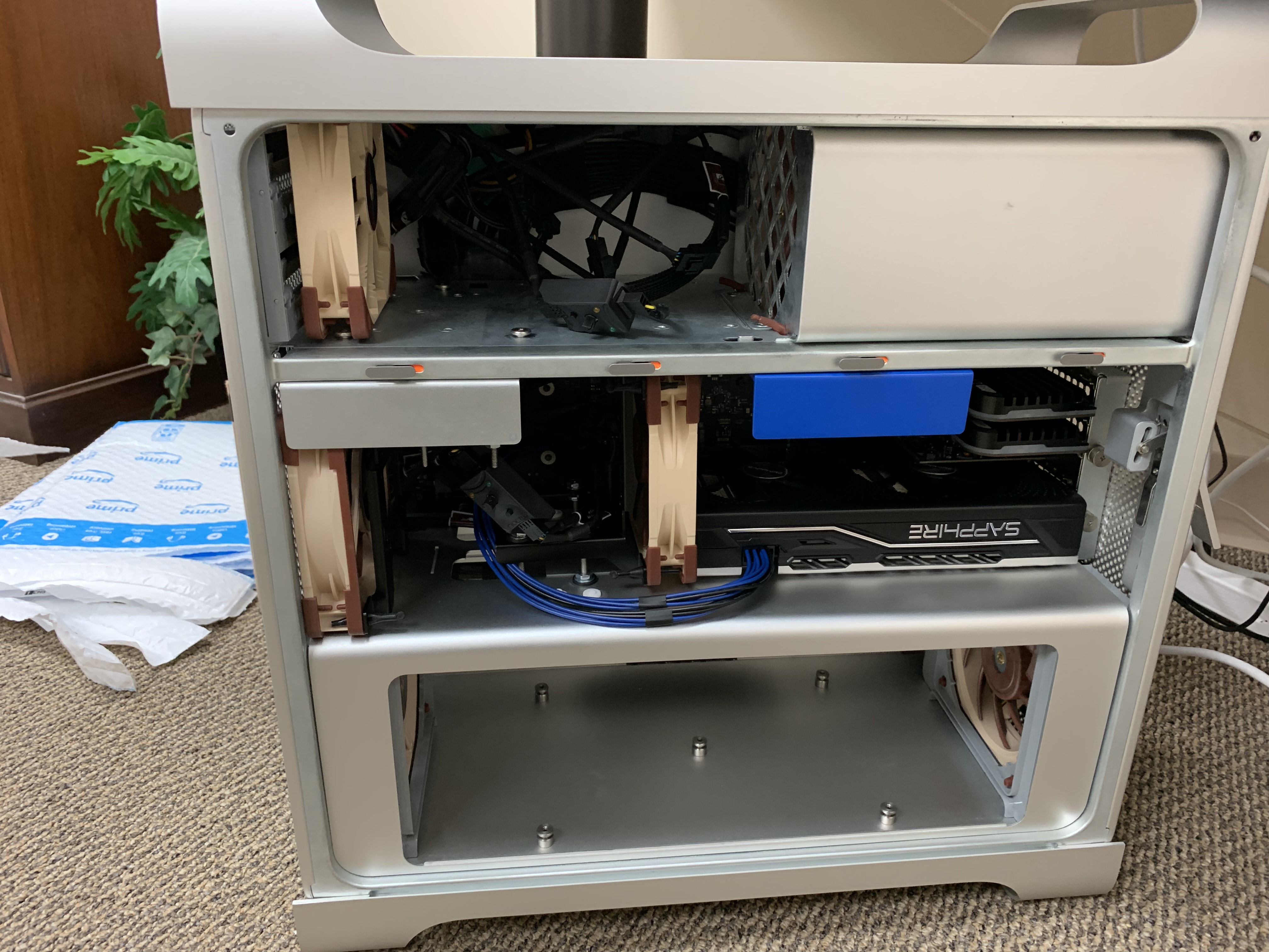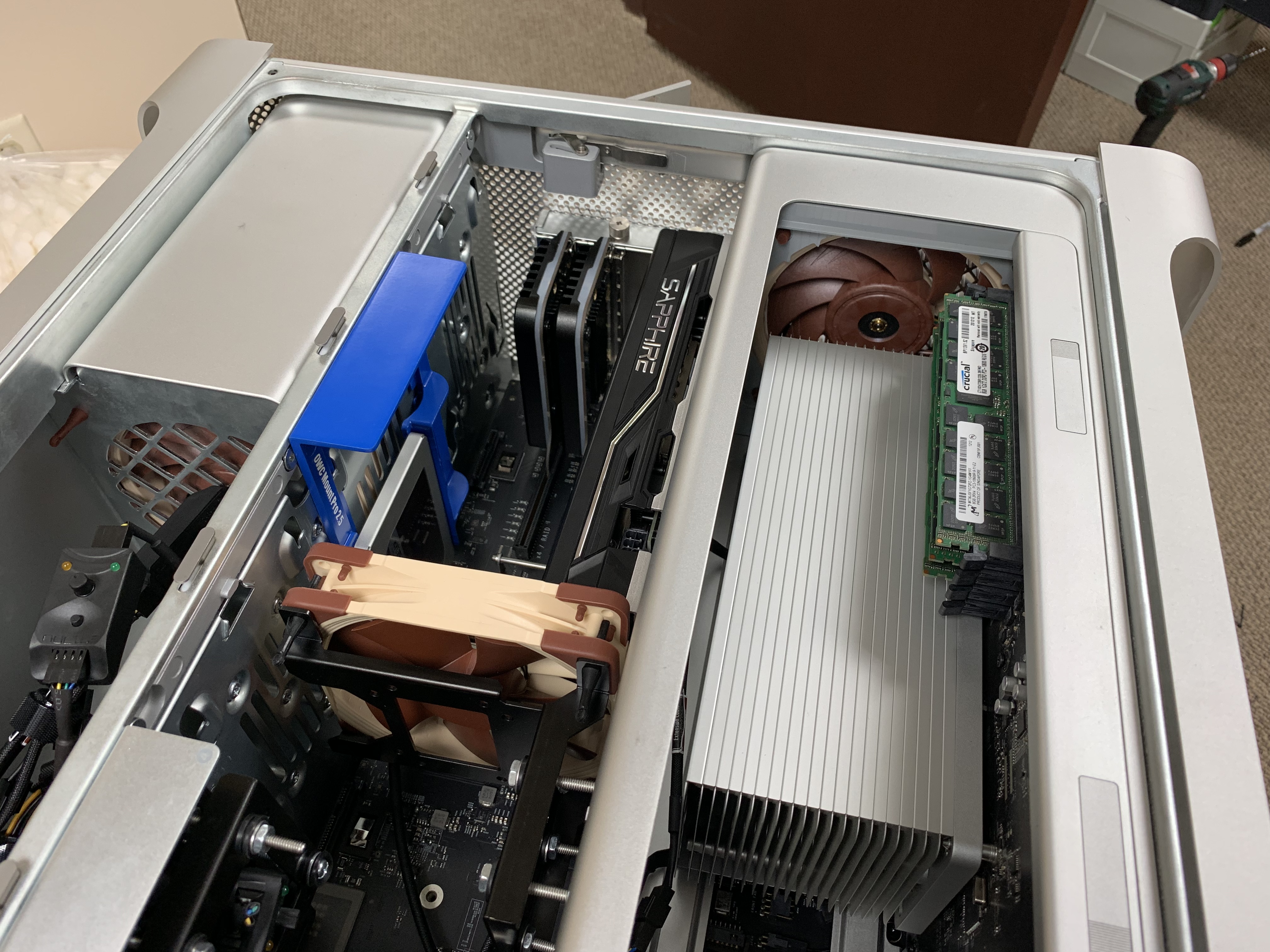 To be frank, I like the solution but I am not sure if I can live with two Noctua fan controllers that are dangling around in the case. Somehow I really want to keep as much as possible to the original machine for transport reasons and reliability. To trust the machines live a third party is an issue for me.