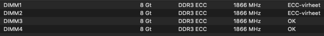 My Mac currently only reports errors for DIMM1 and has been usable for the day without slow-downs or crashes.