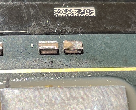 Next step was to upgrade the CPU's, I ordered a pair of X5680's from Korea, for a very good price but damaged one of the tiny bypass capacitors on the one CPU during the de-lidding process (photo attached). After much crying I decided to try them anyway and see if they would work.