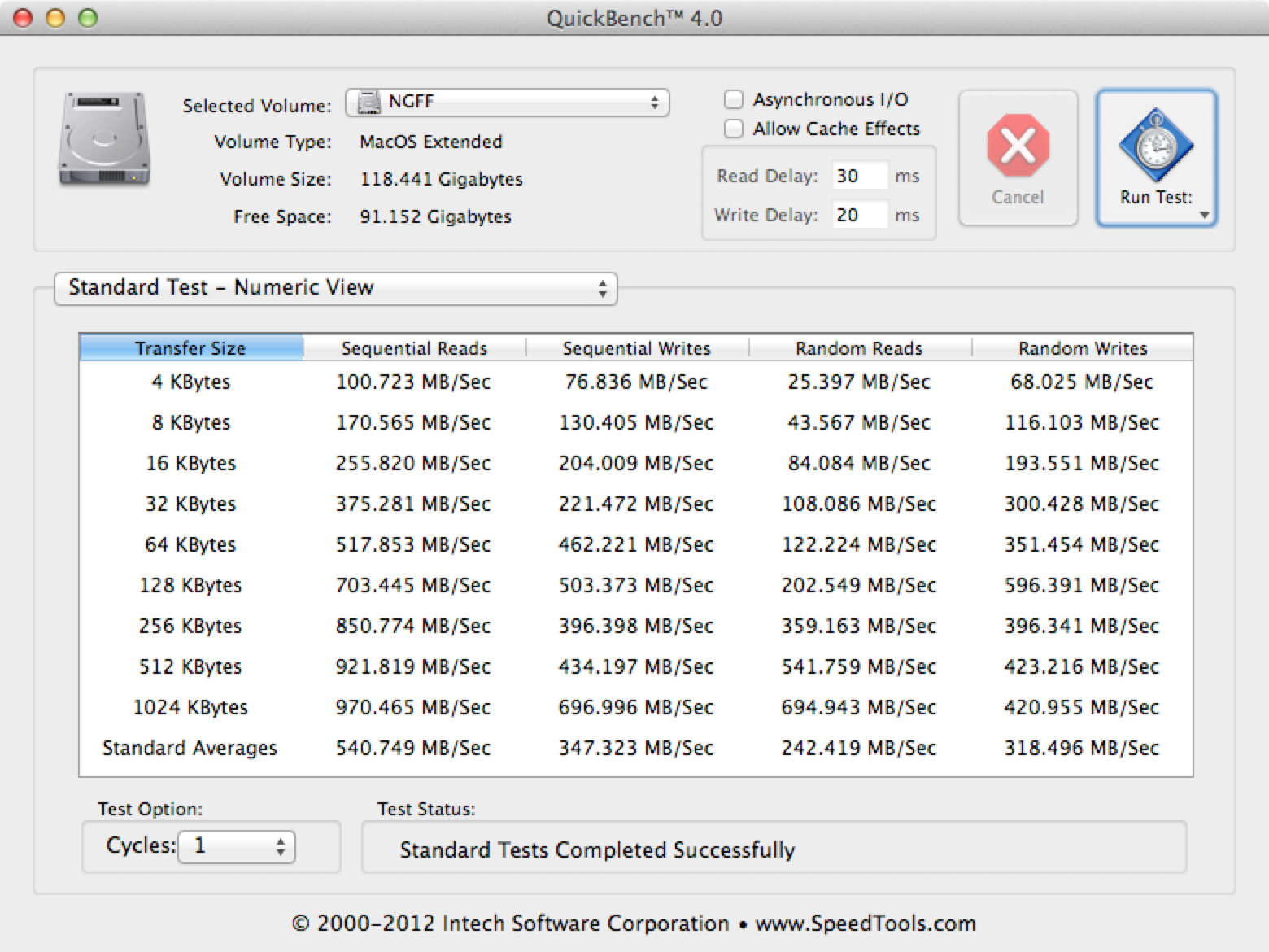Any chance on running Quickbench 4.0? I'm running a cMP with a 128GB flash - open market variant of what Apple is shipping with the nMP - the XP941. Quickbench shows 970MB/sec reads and 696.99MB/sec writes which is close in performance to the flash in the nMP.