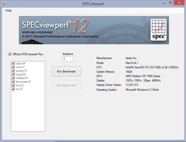 As you'll know, I've been asking for a specviewperf test and it'll be starting my review with it. As most of the specviewperf test is done with 1920x1080 resolution, I downscaled my monitor resolution to match it. I'm quite sure it affects the result somewhat, but I don't think it'll be far off either. I'm the kind of person where a 5fps difference is negligible. Attached is my Specviewperf 12 result with results taken from Specviewperf official site as well.I'm looking for any nMP owners with D500 and D700 to supply me the missing information. Thanks polygoo and nathan43082