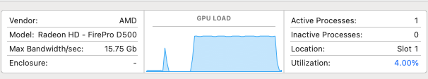 The 2013 Mac Pro has two GPUs of the same model (as seen in Activity Monitor as Slot 1 and Slot 2).