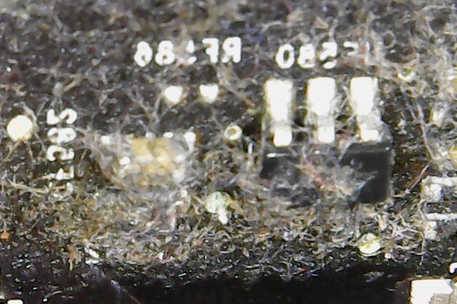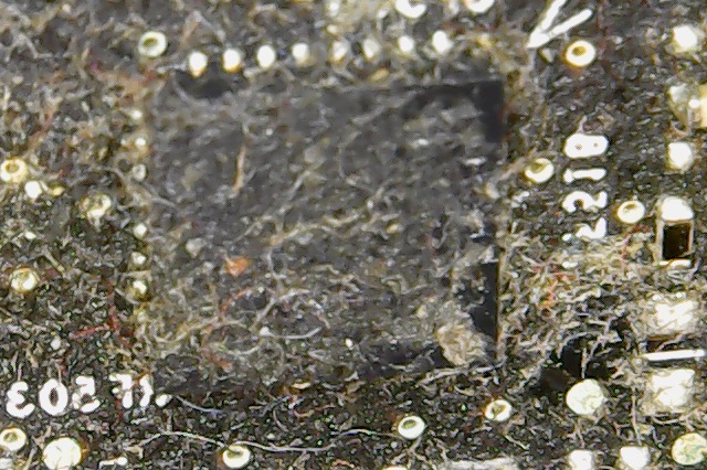 I was stunned, never having seen this before! Thank you! I have learned an important lesson. I had always assumed that the residue on PC boards was flux or other non-conductive substances used in manufacturing. I never thought that their presence would affect a board's functionality. Clearly I was wrong. In the future, I will clean boards when I run across them in this state.