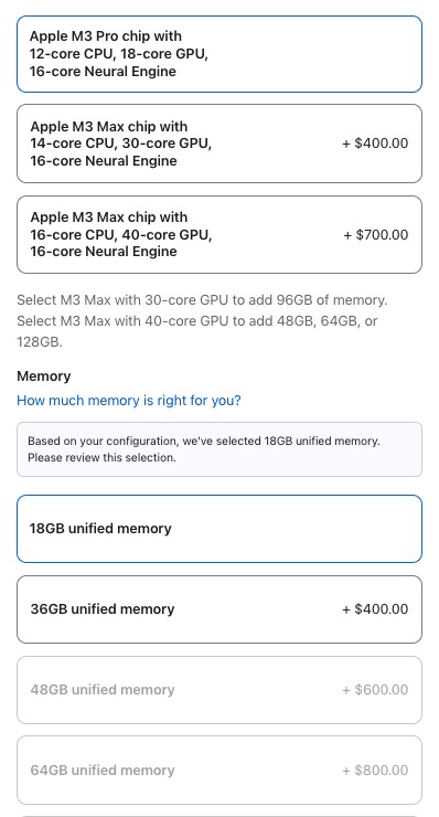 but but but 8 gigabyte mac memory is like 128 TB PC ramz. /sI don’t think it’s the entry models that is the only problem the whole upgrade pricing model feels like a trap. For example if you choose the entry M3 Pro chip and you want 64gb of ram you can’t you need to select the Max chip for that, which is $700 plus $200 for the 64 ram. They’re artificially limiting their chips and pushing people to spend more on different chips to get what they actually need which more ram. Everything is overpriced.