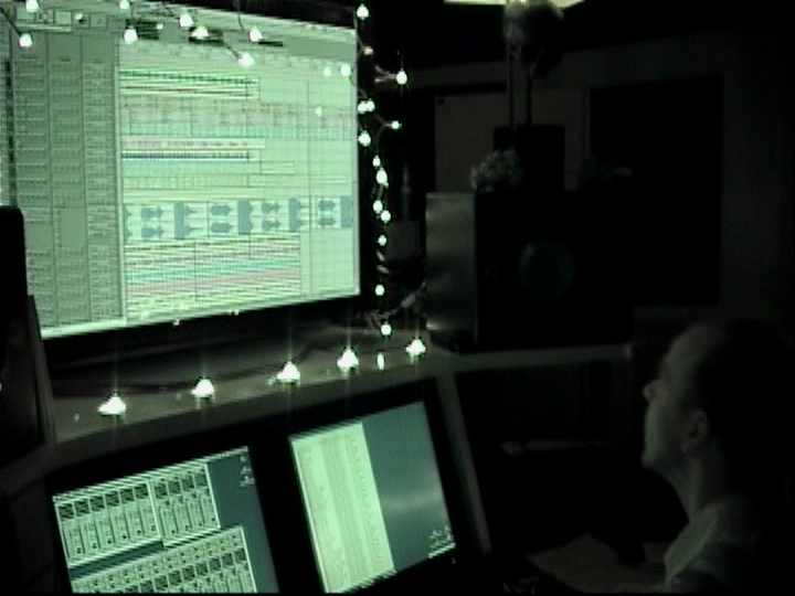 We seem to see a Power Mac G5, the 30-inch Alu Cinema Display with iSight, and the Apple keyboard and mouse. Also behind the Cinema Display is what looks like a mini model of a Power Mac G5. I wondered if it was the Macally external 3.5" HDD enclosure, but I don't think it looked like that on the back. Is it just a miniature, or was there a brand that made these?