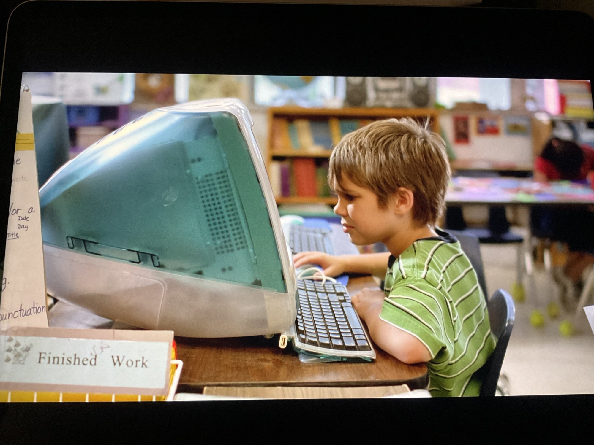 View attachment 1996710A glorious iMac G3 (Bondi? Blueberry? Can’t tell, but it’s a tray-loader) in the movie Boyhood (2014). This unique film was shot from 2002-2014 with the same cast and director throughout. This scene from the boy’s childhood was probably shot around 2002-2003, and thematically makes sense: it’s a poor household, so it could be second-hand in the movie.