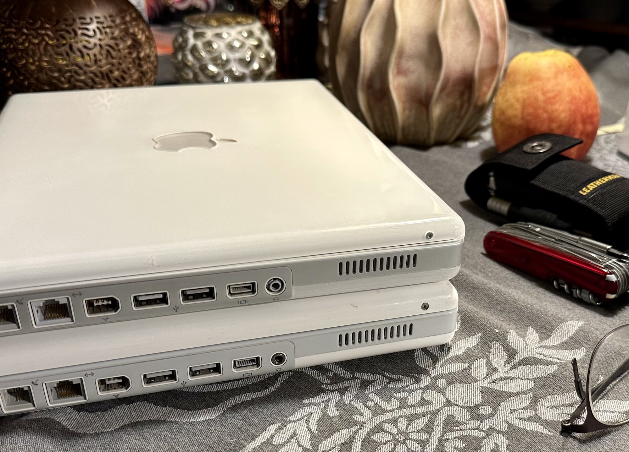 I admit defeatThe top case of iBook G4s are opaque grey, leaving all opaque iBooks as two-tone, as well.![]()