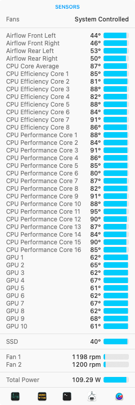 I think it's at the firmware level, but it can be controlled by external fan software. The problem is, I don't think any external apps offer precise curves and it's more difficult to lower the M1 Studio to below its default of 1,100RPM to 1,000RPM. I'd considered using software when I had the M1 Ultra, but I felt I don't want to rely on it, when it really should have been in the firmware at the start and the 2.2Khz whine was too annoying.Is the fan curve controlled by software or hardware in macOS?