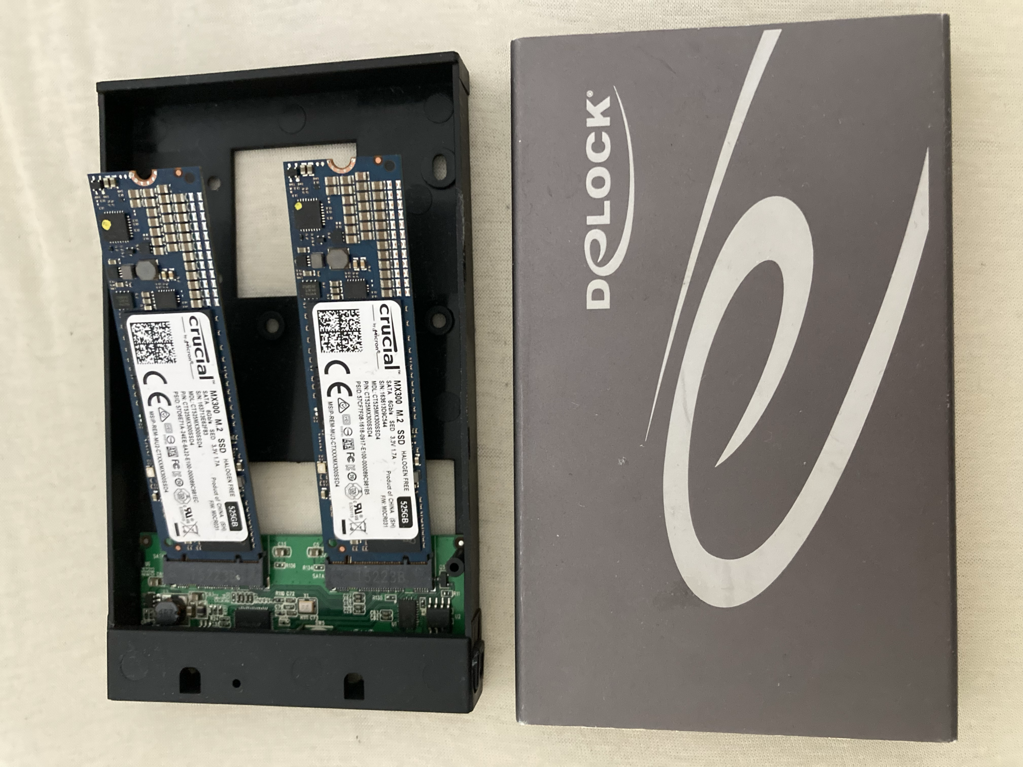 Maybe I found out what the really good working RAID enclosure for two SSDs was called exactly. I don't know where I put it at the moment. There should be newer versions now and it already had 3.1 Gen 2 in 2017.