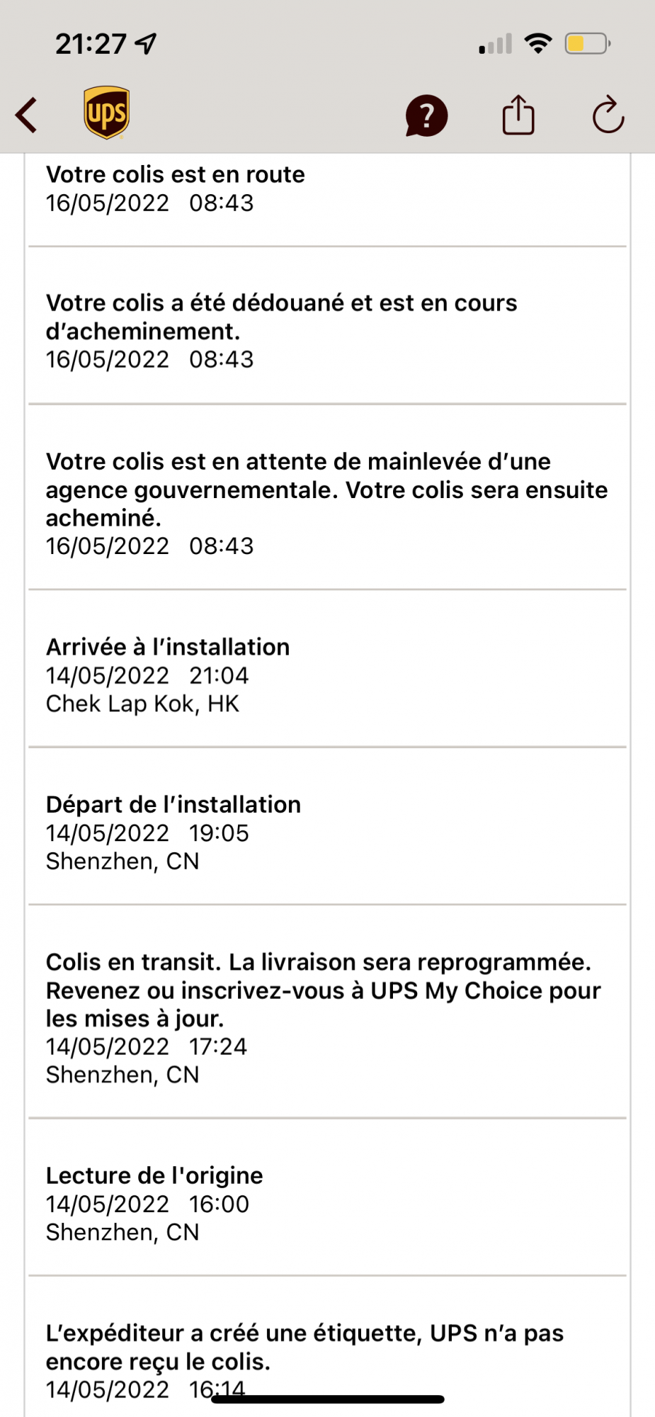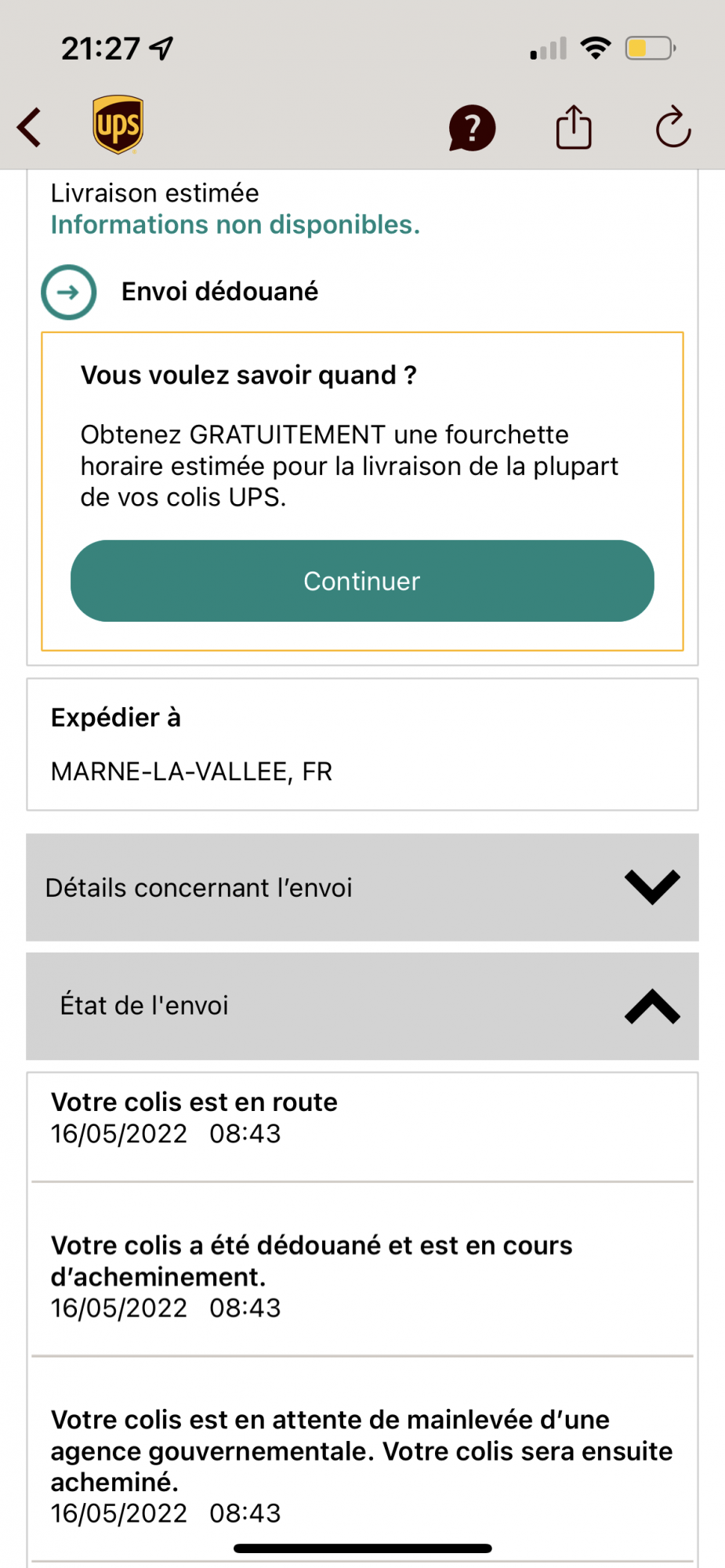 I inform you that UPS informs me that the package will arrive on Tuesday, May 17 between 8:45 a.m. and 11:45 a.m. Except that in Paris it is Tuesday, May 17 and it is 10:30 p.m.😄