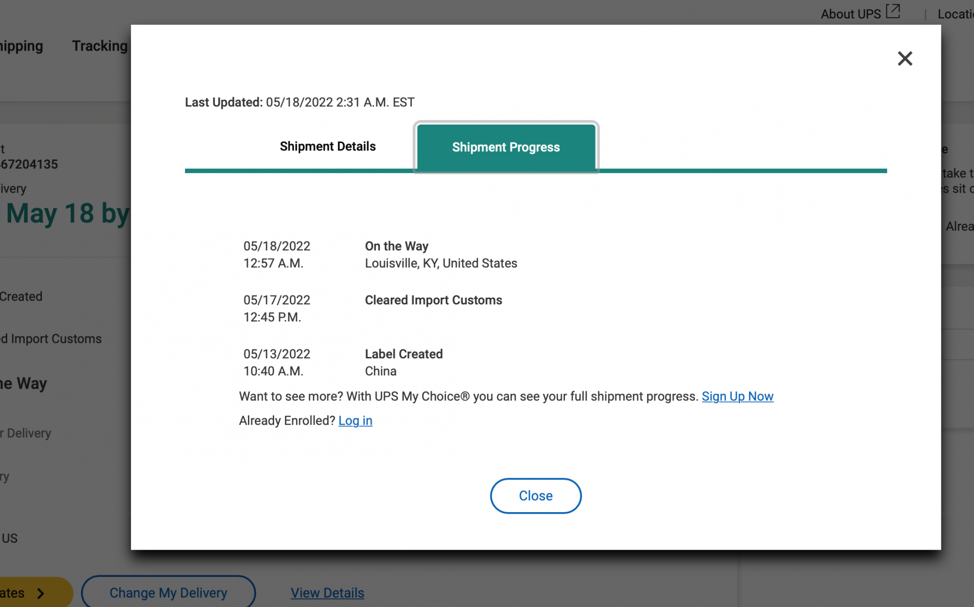 Well mine just made it to KYMust be some Trekkies at UPS, imagining themselves as Captain Kirk telling Scotty to do his teleporting trick:
