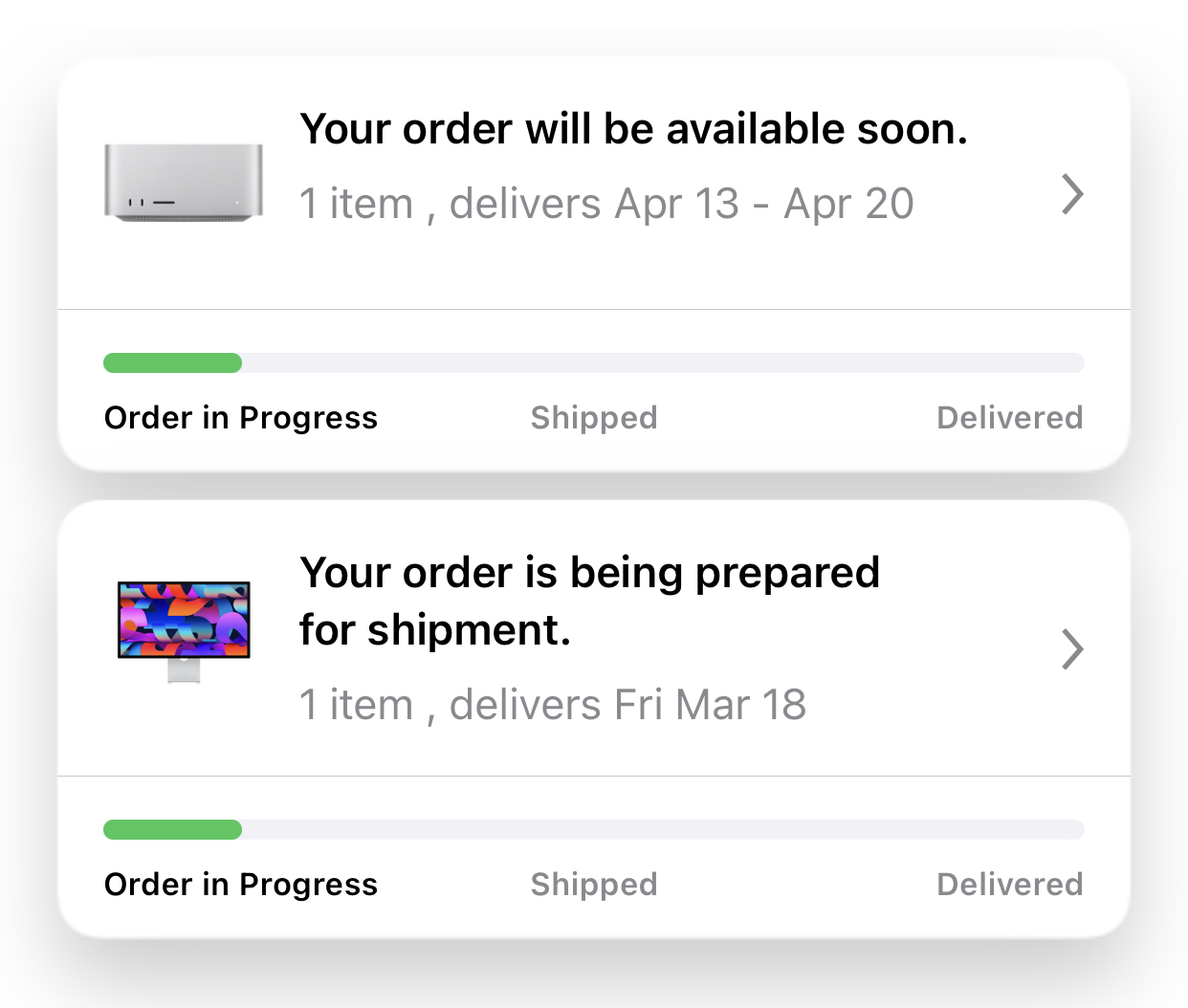 I have a tracking number now. March 21, right in the original estimate window.It will be funny if after all this hand wringing we all just start getting our new Macs according to original estimates.