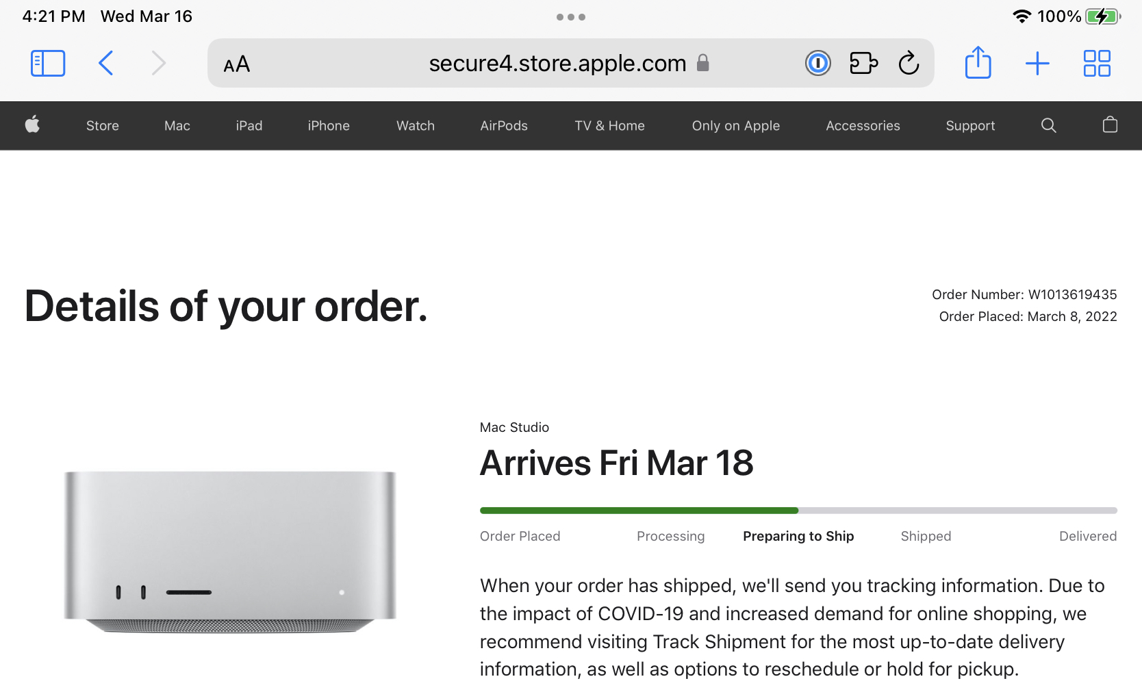 Totally stated a few times in this threadMight want to check with UPS, Apple kept saying waiting for shipment, and when I checked with UPS, found out it shipped from China on 3/12/2022. UPS says it left AK at 3:20 PM today 3/16/2022.