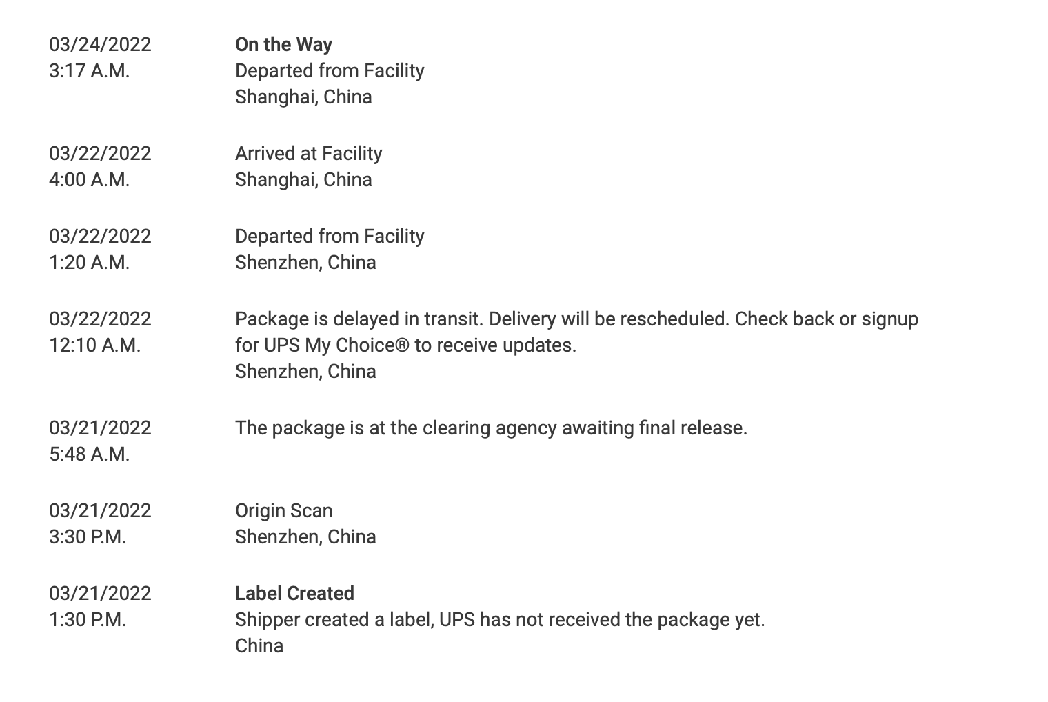 FYI, I’m in France. My order was order was supposed to arrive either the 21st or 22nd of March. Spoiler : it did not.