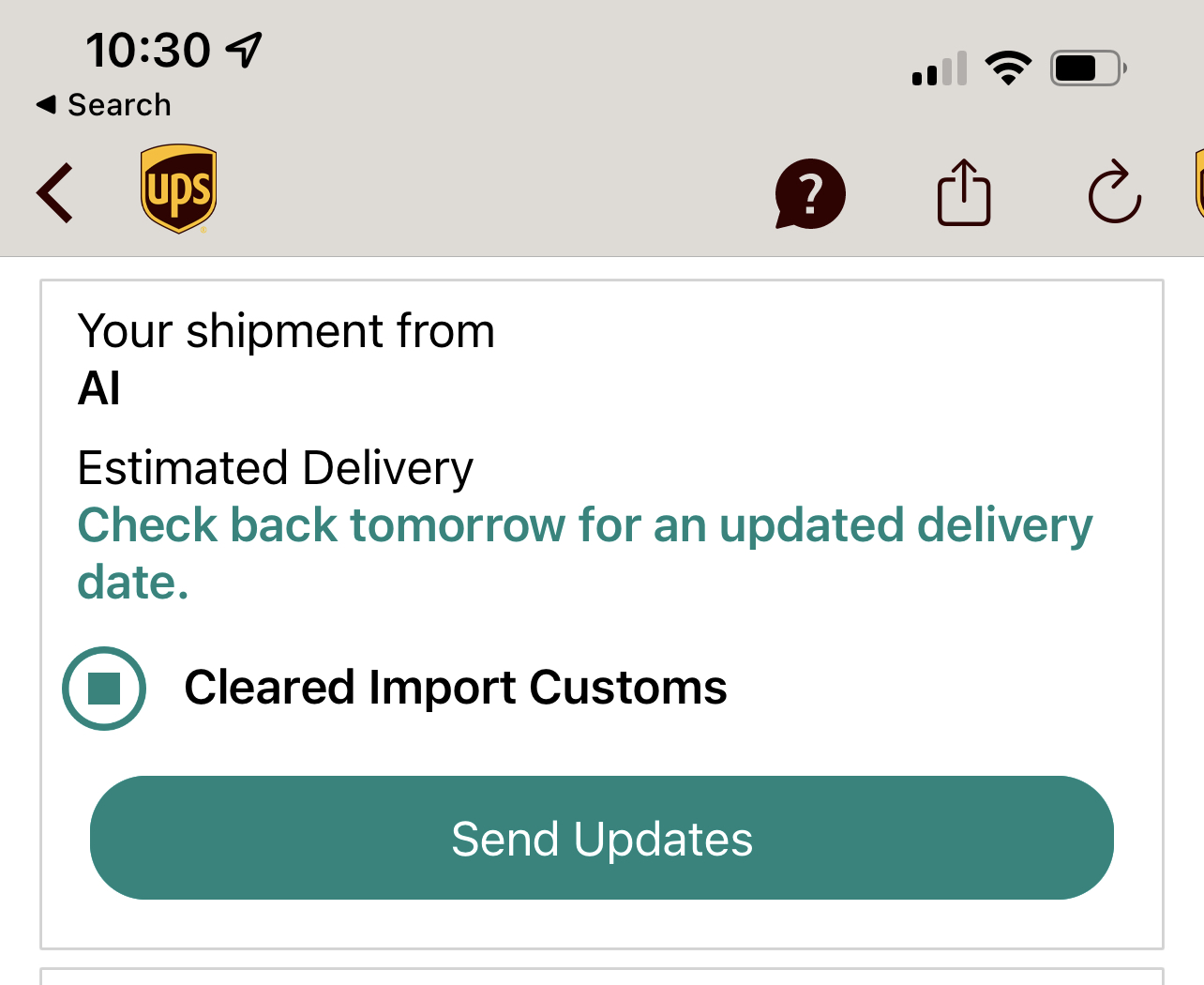 Nothing too strange about that. The general history of tracking Apple stuff with UPS is that you'll get an estimate at initial ship, it may disappear in the clearance and export process (where the variance is in ship timelines), and you'll get another (usually pretty solid) estimate once it's clear.Mine is still showing cleared customs (Anchorage) and nothing else. It says delivery date will be updated soon on My UPS and on the general website, "delivery date unknown" which is kind of ominous.