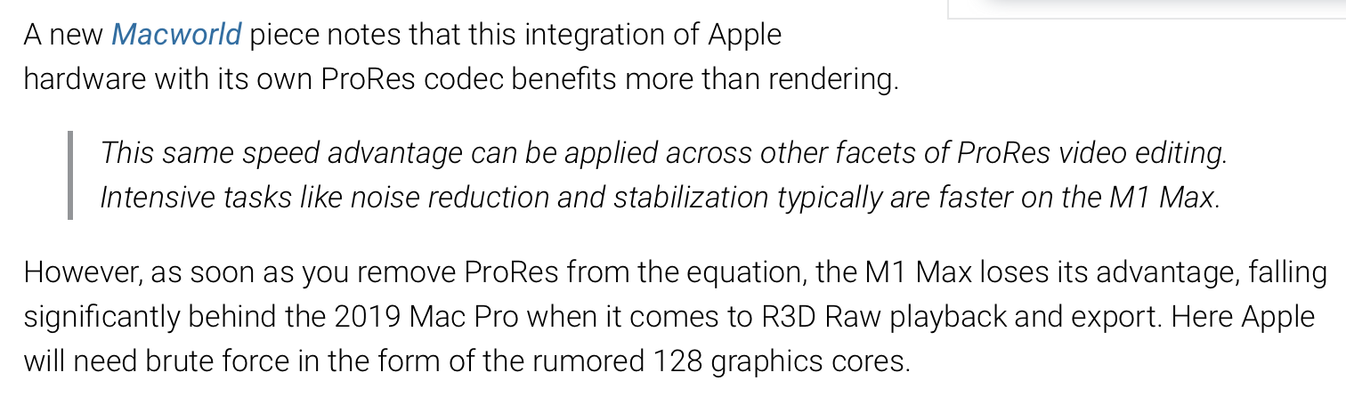 From what I've read, the top M1 Ultra is only consistently faster than the top Mac Pro when using software for which Apple has built-in accelerators (like Pro Res). Outside of that, it depends on the use case. For instance, these links indicate it's slower for R3D Raw playback and export: