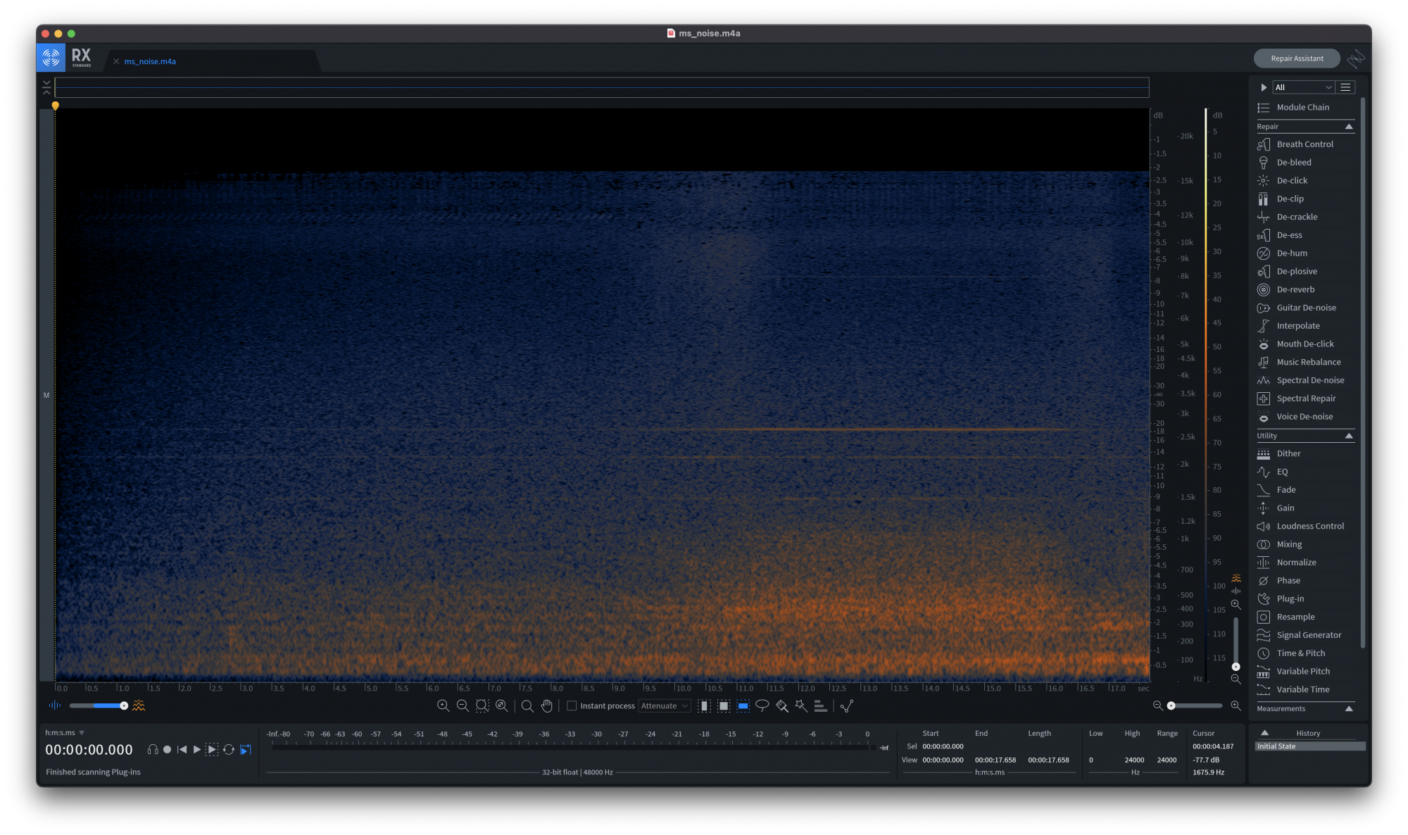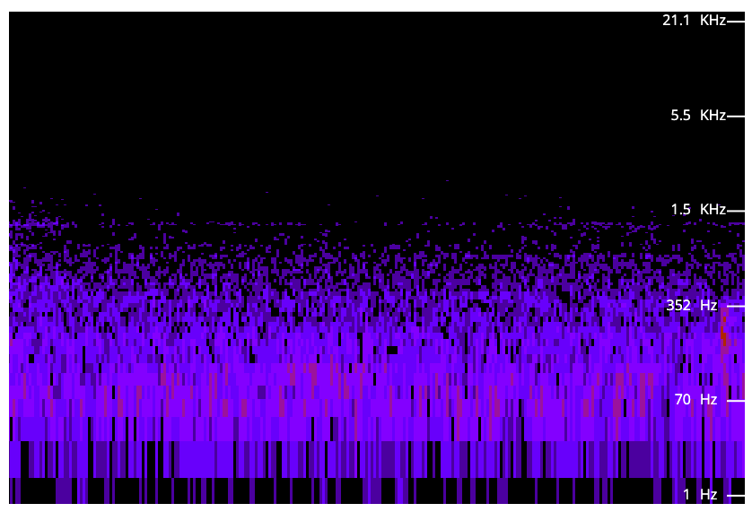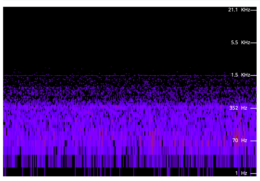 I did a quick recording last night, using voice memos on my iPhone, and here's a spectral graph of the audio file. Around halfway, you can see the lines intensify, and that's when I moved the phone a few inches above and behind the Mac Studio (edit: from approximately where my head is when sitting in my chair).