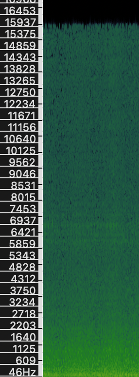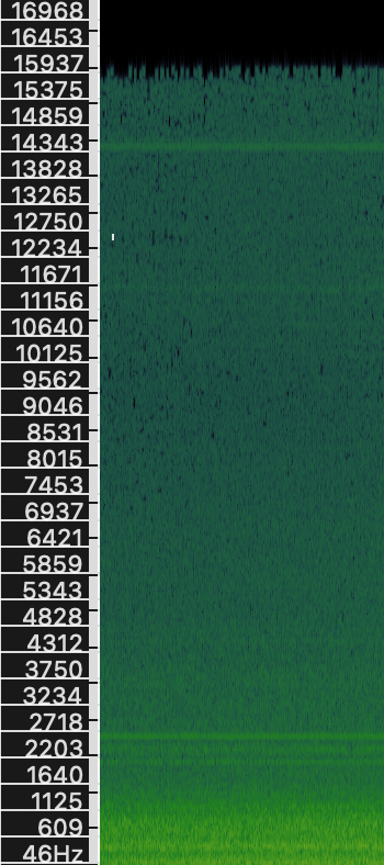 The gaming PC has a very smooth "white noise" pattern, with no individual frequencies poking through. The Mac Studio however has a definite tone at ~2.6 kHz and then another higher up at about 14 kHz.
