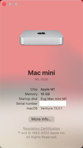 Mojave. (It's my compatible with everything Mac...)What OS? This is what it says for my M1 Mac mini in Ventura: