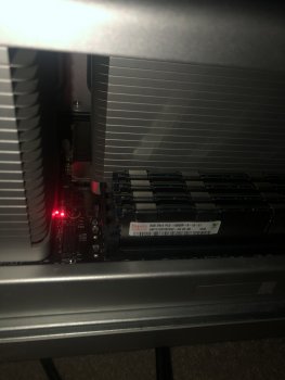 Now I've got a few RAM slots which my Mac is unable to read, along with this red light. I've had this problem before, but the RAM slots that couldn't be read were in different places. I tried swapping the RAM around but the same slots are still unreadable. There isn't anything else which seems to be overheating.